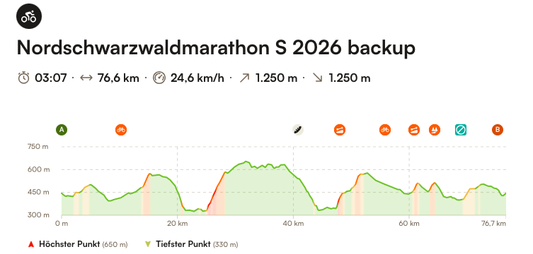 Die kürzeste Runde richtet sich an Einsteiger und alle, die die den NORDSCHWARZWALD-RADMARATHON in ruhigerem Tempo erleben möchten. Auf 76 Kilometern, mit 1.250 Höhenmetern, genießt du die landschaftliche Vielfalt des Nordschwarzwaldes.